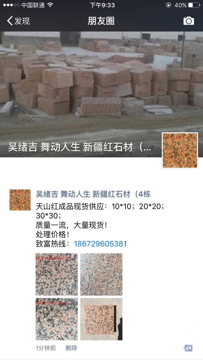鄯善縣至德石業(yè)有限公司位于美麗的葡萄之鄉(xiāng)~新疆吐魯番鄯善縣鄯善石材工業(yè)園。本公司主要經(jīng)營天山紅,新疆紅,鄯善紅,新疆黃,雪蓮花,灰麻等各類新疆石種,擁有先進(jìn)的生產(chǎn)設(shè)備, 雄厚的技術(shù)力量,是一家集礦山開采,石材加工,銷售于一體的多年老品牌石材公司。本公司還設(shè)石材銷售點于各個大型建材市場,廣東云浮市思勞,廣東云浮市珠洞,福建省水頭鎮(zhèn)閩南建材市場。承諾滿足不同地區(qū)的采購商多種需求。我們期待您的來電,竭誠歡迎新老客戶共創(chuàng)雙贏。