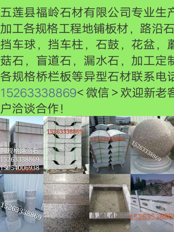 專(zhuān)業(yè)生產(chǎn)加工五蓮紅,五蓮花各規(guī)格工程板,路沿石,擋車(chē)球,擋車(chē)柱等異型石材,聯(lián)系電話15263338869歡迎各界朋友洽談合作!