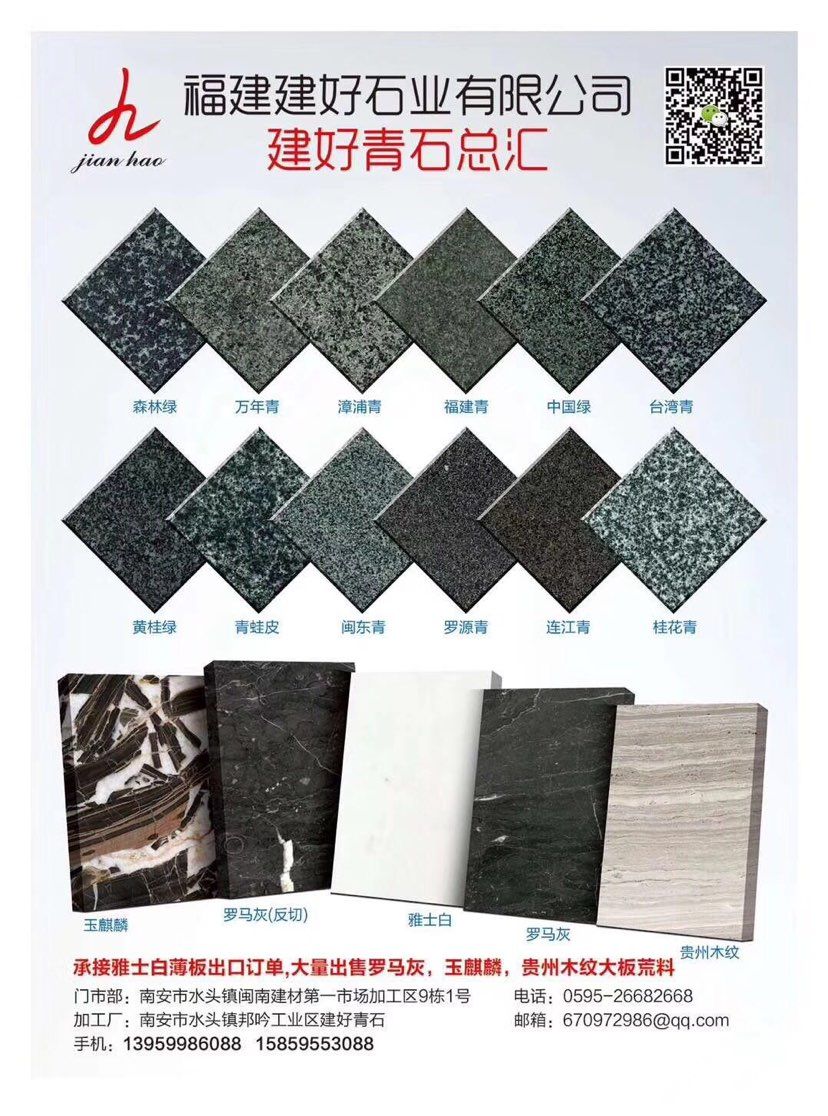 言升(建好)石業(yè)專業(yè)青石供應商,自有礦山、實力工廠、水頭門市部一體;主營:青石、福建青、萬年青、漳浦青、廣西青、萬源青、四川青、森林綠、中國綠、古典綠、輝綠巖、桂林青,臺灣青等產(chǎn)品;園林景觀,石材背景墻,大板,荒料現(xiàn)貨供應15375868088 13959986088;歡迎您來電溝通洽談業(yè)務!