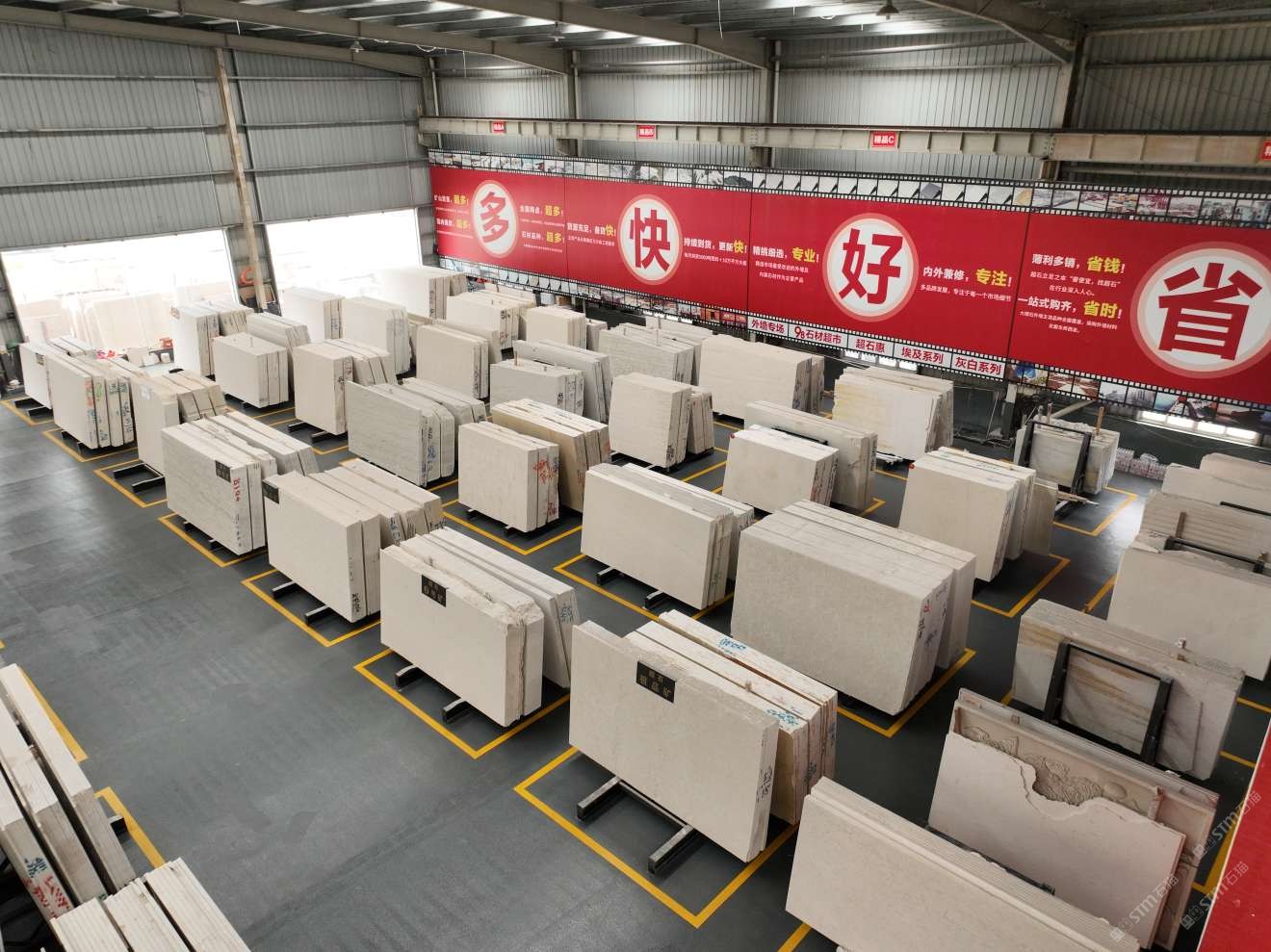其中超石上海工廠,占地45000平方,擁有8臺(tái)大拉鋸、3臺(tái)進(jìn)口磨機(jī),工人150多名,年產(chǎn)量150萬平米。