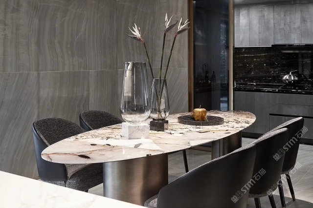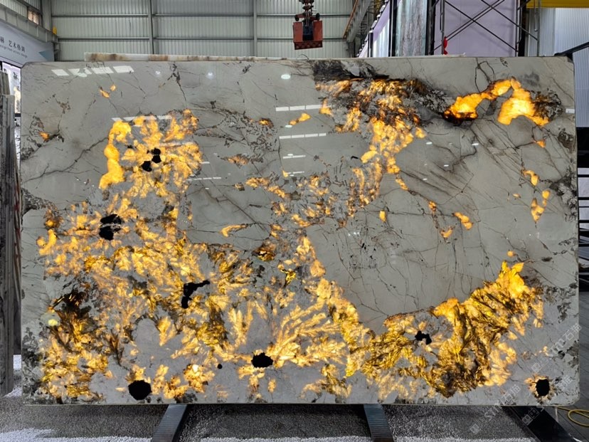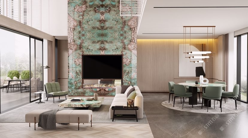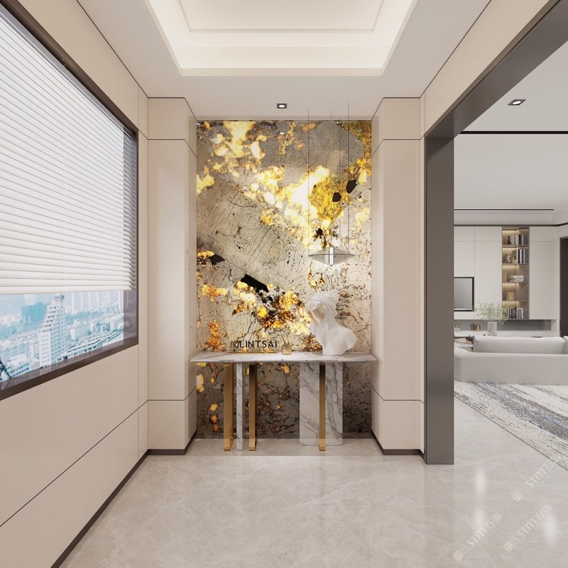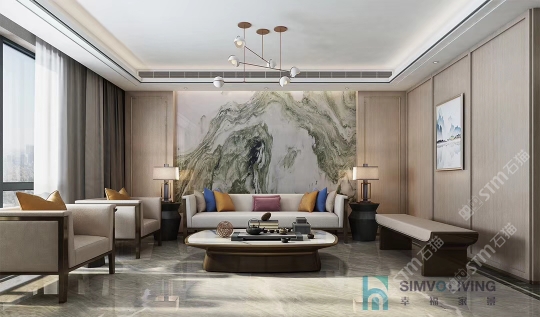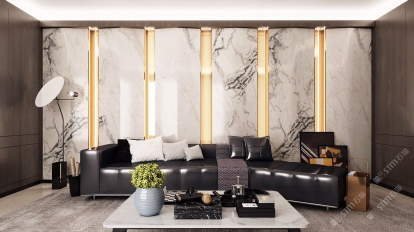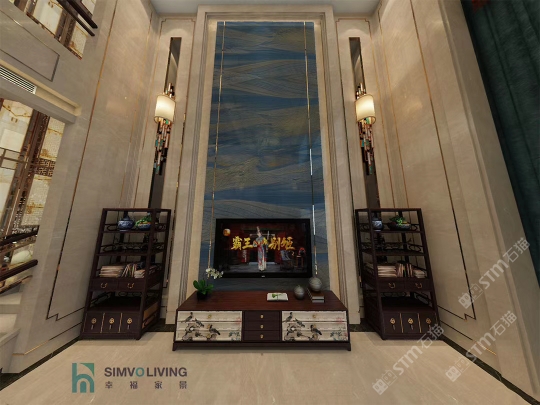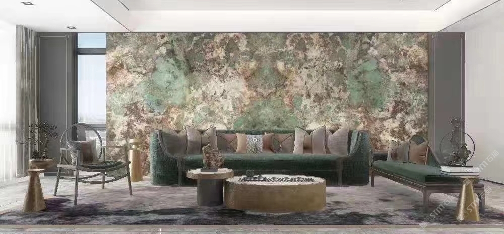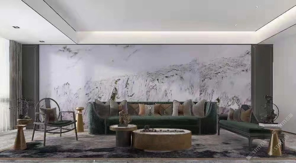 幸福家景定位于高端家裝精品石材批發(fā)商,建立了天然玉石、天然石英石、山水畫(huà)等三大板塊為主的天然石材背景墻體系!