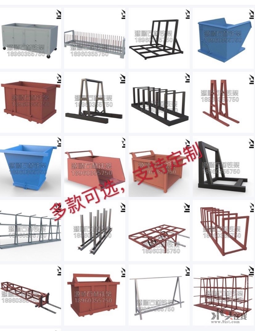 各類(lèi)石材用鐵架:大板車(chē),成品架,A字架,火車(chē)架,插桿A字架,鐵桶。