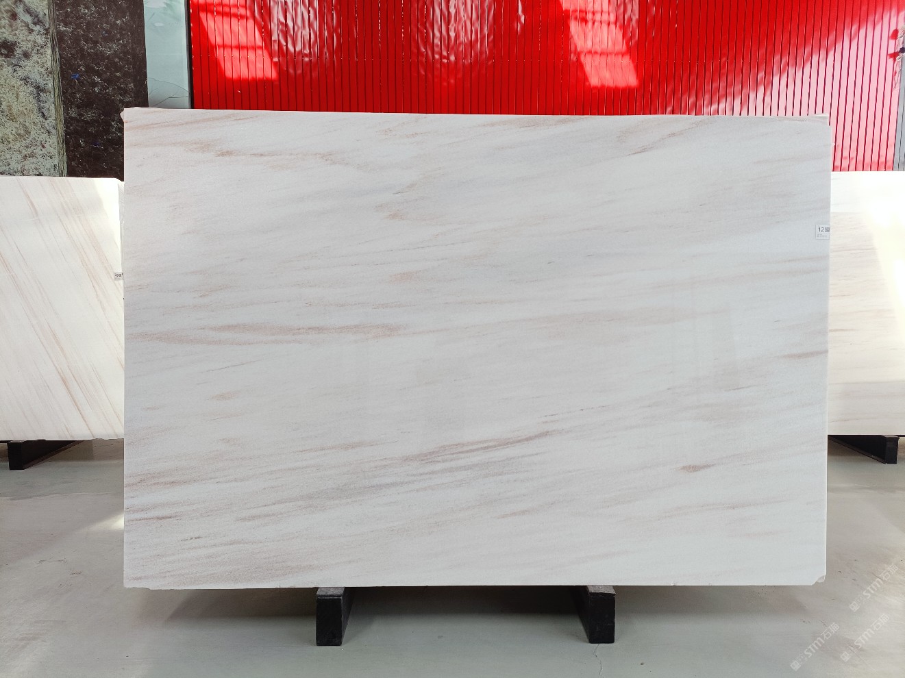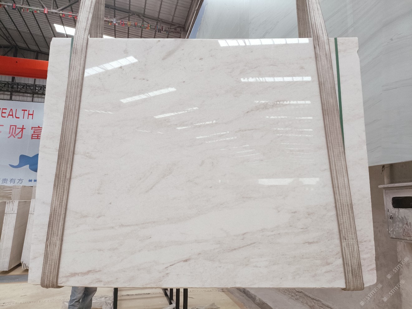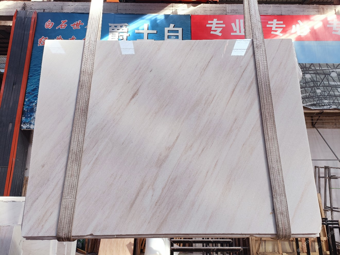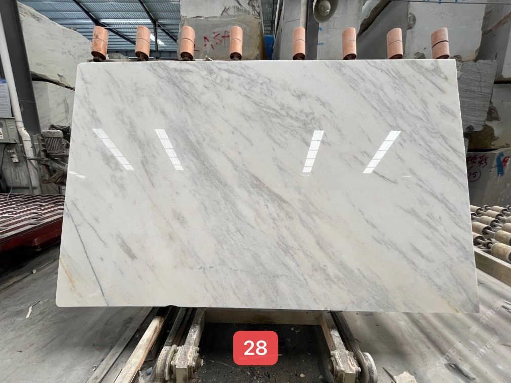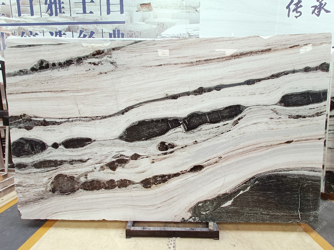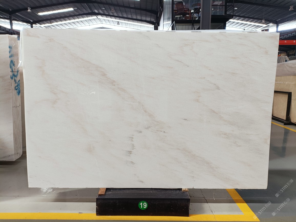 云浮站石材公司開發(fā)的歐亞白獨立礦山,專屬道路,礦口面積約 725 畝,證件齊全。今年礦口開采出直紋,亂紋優(yōu)質(zhì)大板材料,礦山采用單面墻平臺開采方式,10臺繩鋸、5臺鏟車、5臺勾機、一臺 30 噸叉車,共有職工40人,已有兩個開采平臺。礦山已開采多年,道路、設施都已成熟,現(xiàn)產(chǎn)能穩(wěn)定增長。品質(zhì)非常穩(wěn)定,一石兩面分別可以產(chǎn)出直紋和亂紋兩種紋路,材質(zhì)為細膩的玉質(zhì)品體。