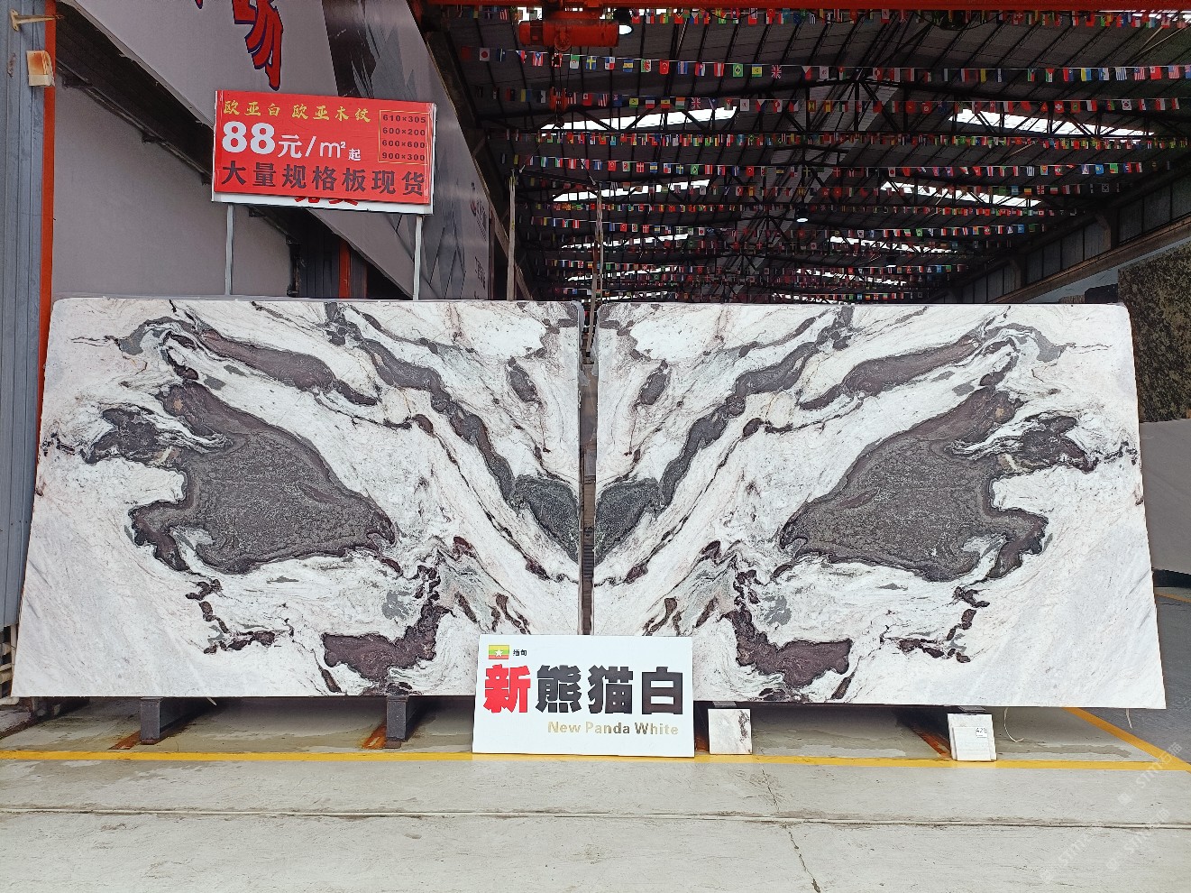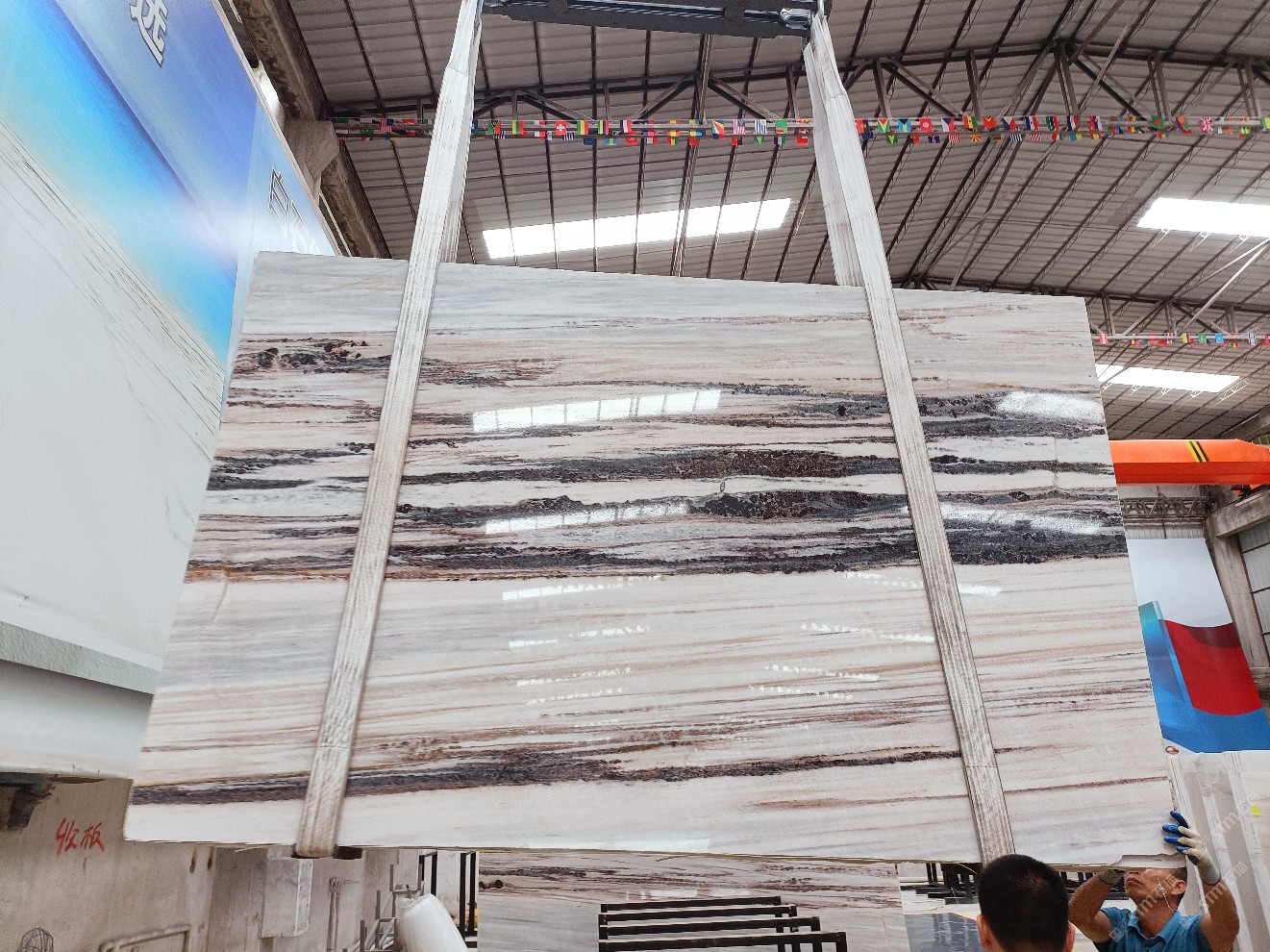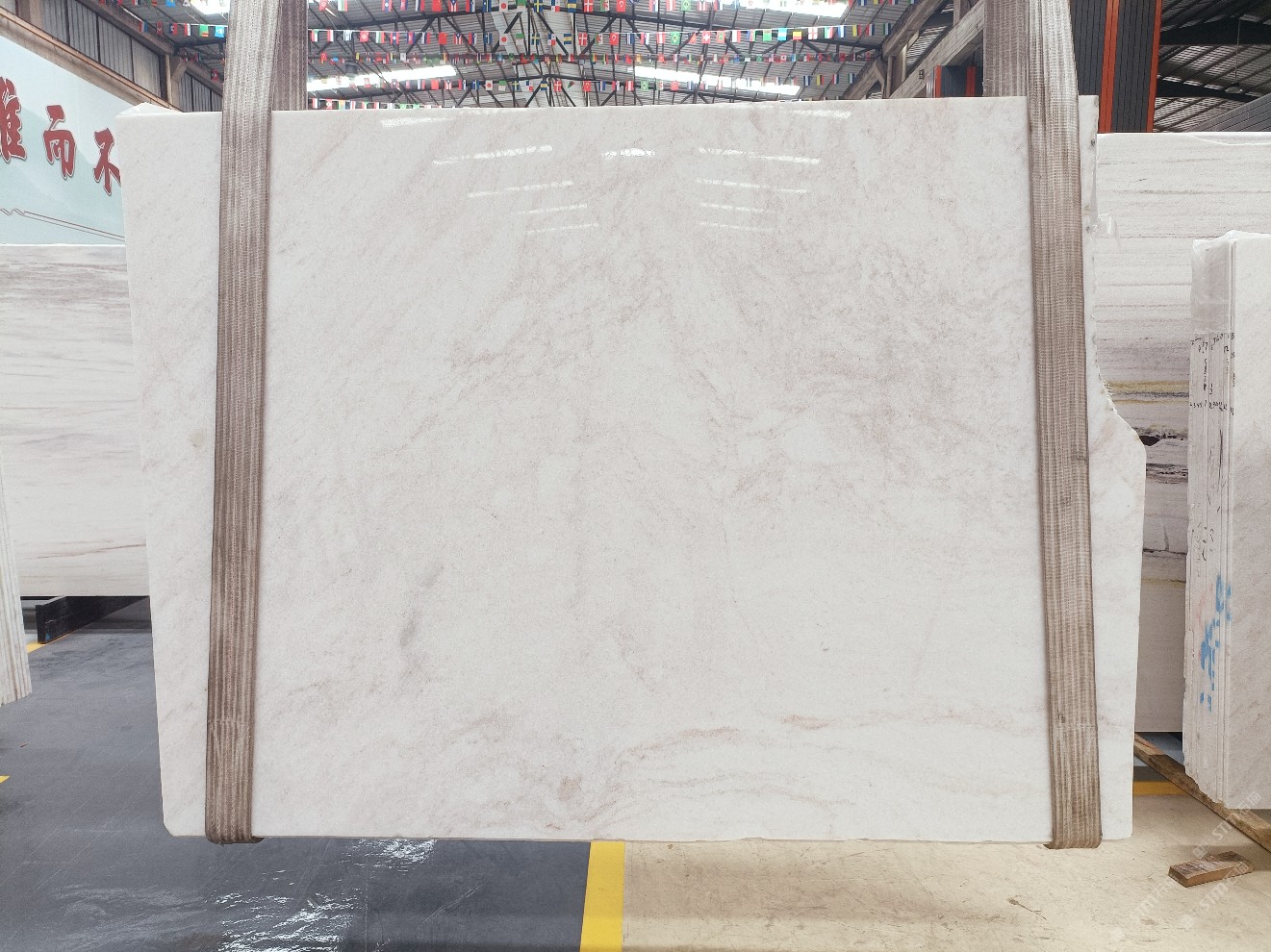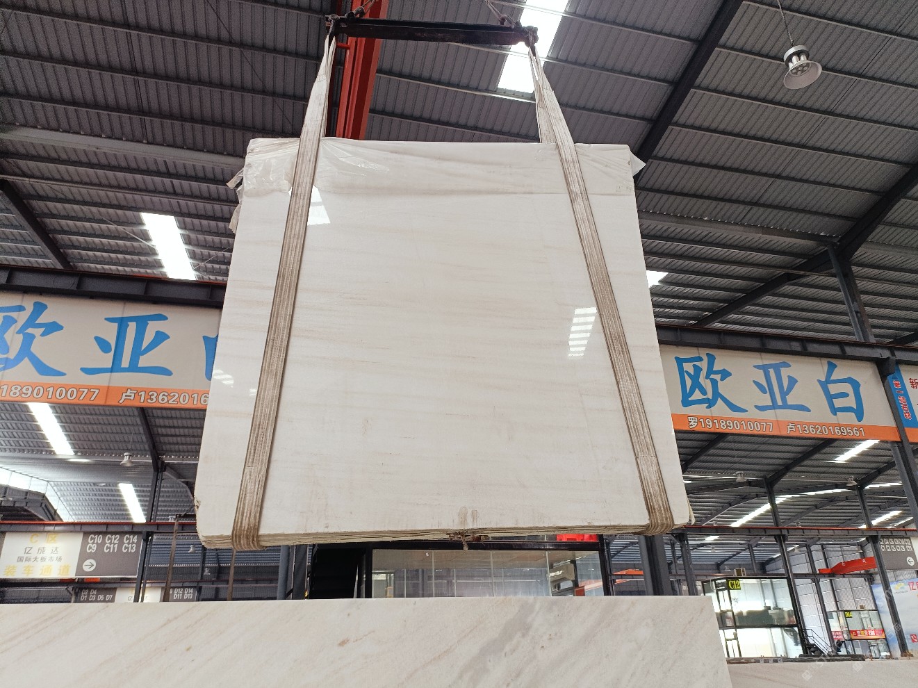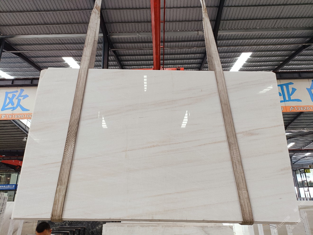 云浮站石材公司開發(fā)的歐亞白獨立礦山,專屬道路,礦口面積約 725 畝,證件齊全。今年礦口開采出直紋,亂紋優(yōu)質(zhì)大板材料,礦山采用單面墻平臺開采方式,10臺繩鋸、5臺鏟車、5臺勾機、一臺 30 噸叉車,共有職工40人,已有兩個開采平臺。礦山已開采多年,道路、設施都已成熟,現(xiàn)產(chǎn)能穩(wěn)定增長。品質(zhì)非常穩(wěn)定,一石兩面分別可以產(chǎn)出直紋和亂紋兩種紋路,材質(zhì)為細膩的玉質(zhì)品體。