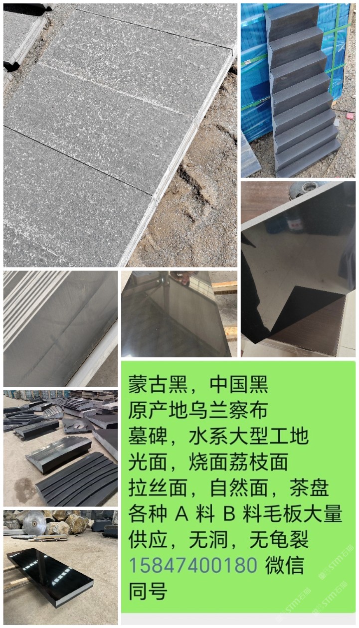 本公司位于烏蘭察布市,察哈爾右翼后旗,全國質的蒙古黑,玄武巖,質地堅硬,無孔洞,A叫做出口,墓碑,茶盤,不怕曬永不變色