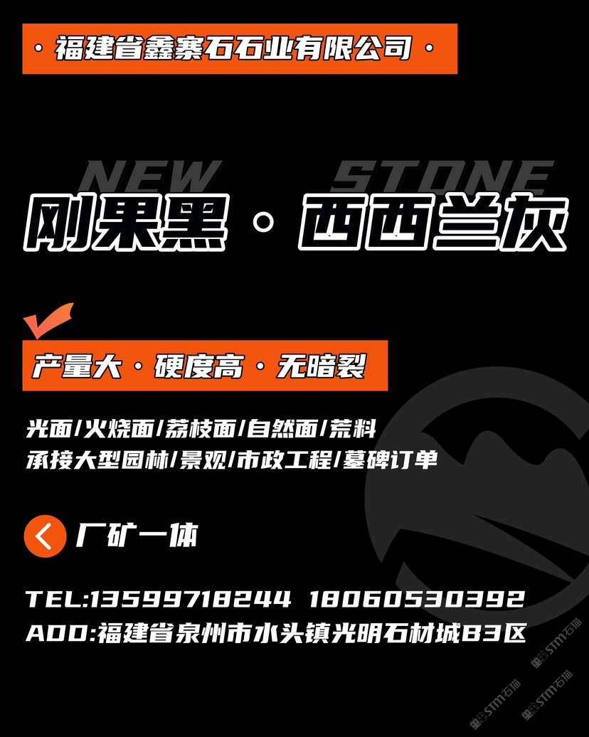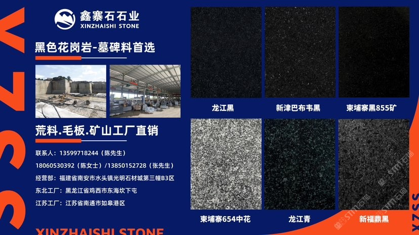 經(jīng)營(yíng)范圍:龍江黑、龍江青,柬埔寨黑855礦,柬埔寨654,新津巴布韋黑荒料,毛條板,規(guī)格板,承接石材外貿(mào)