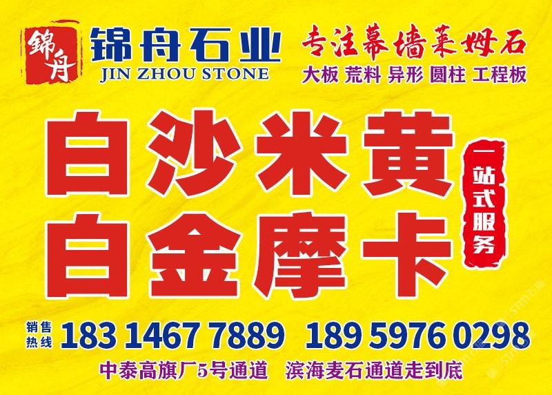 錦舟石業(yè)主營(yíng):白沙,白沙米黃,百里香,香貝,月光米黃,貝金米黃,伊麗莎白,貝寧白白摩卡,白金摩卡,金摩卡,灰摩卡,維納多,沉香米黃,沙浪米黃等幕墻萊姆石材