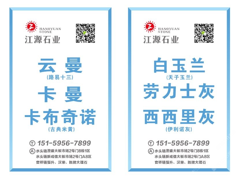 銷售點:澳盛大板市場2號門8棟1-4區(qū),新成信2號門A8-10區(qū),官橋恒升、勝牌大理石廠