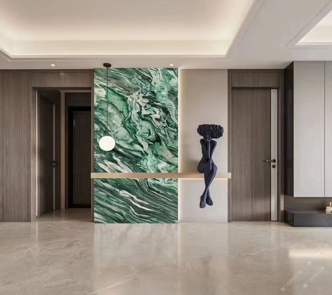 發(fā)布信息: 佰達(dá)奢石「挪威綠」 編號: BD-22097 規(guī)格:2700x1550x18mm 「挪威綠」象征著生命力的綠色為基底,純潔的白色水晶和黑色紋理穿插其中,看上去像一副油畫一般,具有很強的視覺沖擊感,藝術(shù)氣息濃厚,不論是作為桌面還是玄關(guān),都能給溫暖的家增添色彩,盡顯,奢華。