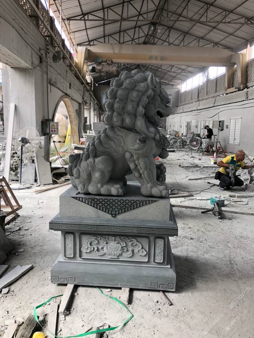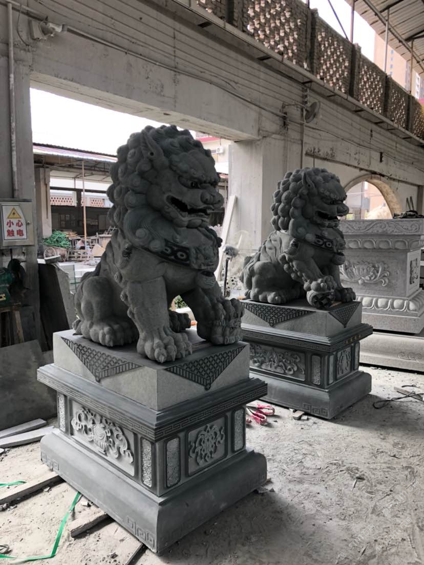 石雕青石獅子,招財進寶,辟邪轉運。