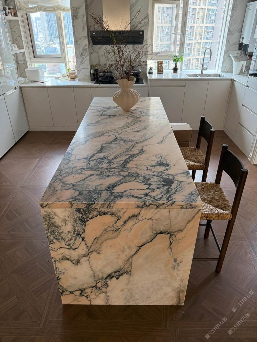 煙粉廚房島臺