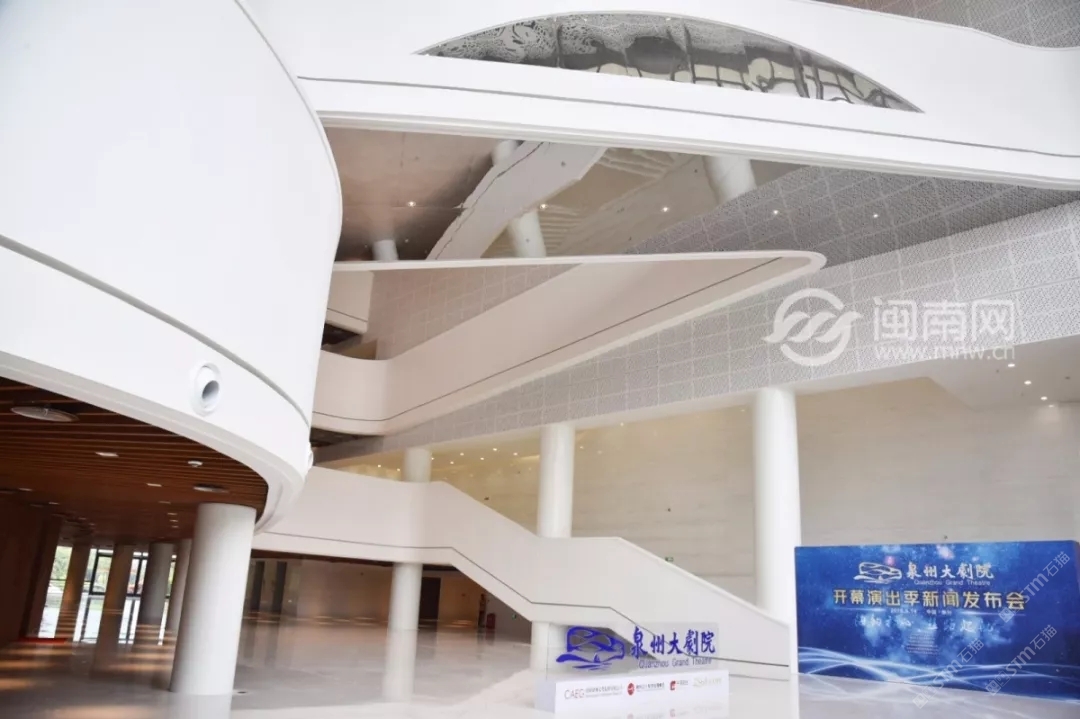 發(fā)布信息: 泉州大劇院整體設(shè)計(jì)猶如市花“刺桐花”的泉州市公共文化中心,環(huán)灣面海,欣欣向榮。公共文化中心位于東海片區(qū)山海中軸線中段,毗鄰泉州市政府,四大主體文化場館泉州科技與規(guī)劃館、東海工人文化宮、泉州大劇院、泉州圖書館一起成為“亞洲多元文化發(fā)展中心”。自2015年8月項(xiàng)目啟動(dòng)建設(shè)以來,倍受泉州市民關(guān)注,這里將成為文化新家園。 “四朵花瓣”之一的泉州大劇院即將于2019年6月30日率先揭幕。 18日上午, 泉州大劇院舉行了 開幕演出季新聞發(fā)布會(huì)。 坐落于東海的泉州市公共文化中心 “四朵花瓣”之一的“海絲之花” 率先揭開了神秘面紗。 室內(nèi)設(shè)計(jì)延續(xù)外立面元素, 抽取海洋元素疊浪與海面波光等為設(shè)計(jì)意向, 水平向的穿孔鋁板像絲綢一般輕盈通透, 表達(dá)出舞蹈的節(jié)奏與音樂的韻律, 也體現(xiàn)出泉州作為“海上絲綢之路”起點(diǎn)城市的文化特點(diǎn)。“海絲樂章”為設(shè)計(jì)主題, 建筑外立面設(shè)計(jì)采用雙層表皮結(jié)構(gòu), 內(nèi)層為玻璃幕墻,外層為金屬穿孔鋁板表皮, 水平方向的波浪形曲線設(shè)計(jì)室內(nèi)設(shè)計(jì)延續(xù)外立面元素, 抽取海洋元素疊浪與海面波光等為設(shè)計(jì)意向, 水平向的穿孔鋁板像絲綢一般輕盈通透, 表達(dá)出舞蹈的節(jié)奏與音樂的韻律, 也體現(xiàn)出泉州作為“海上絲綢之路”起點(diǎn)城市的文化特點(diǎn)。