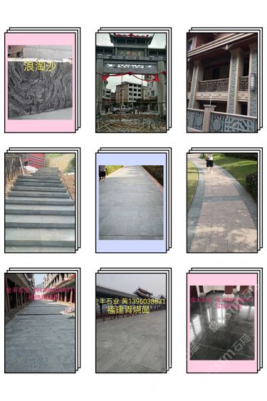 發(fā)布信息: 《金豐石業(yè)》芝麻白芝麻灰燒面600X300X30 出售:青石 福建青 橄欖綠 橄欖青 萬源青 達州青 浪淘沙輝綠巖巖 荒料 自有礦山 主營:雕刻 欄桿 光面 荔枝面 燒面 磨菇面 自然面 小方塊 路沿石 承接:各種花崗巖大理石工程單 地址:水頭鎮(zhèn)下店村公路邊 聯(lián)系人黃先生13960388311