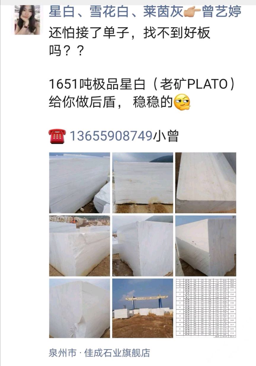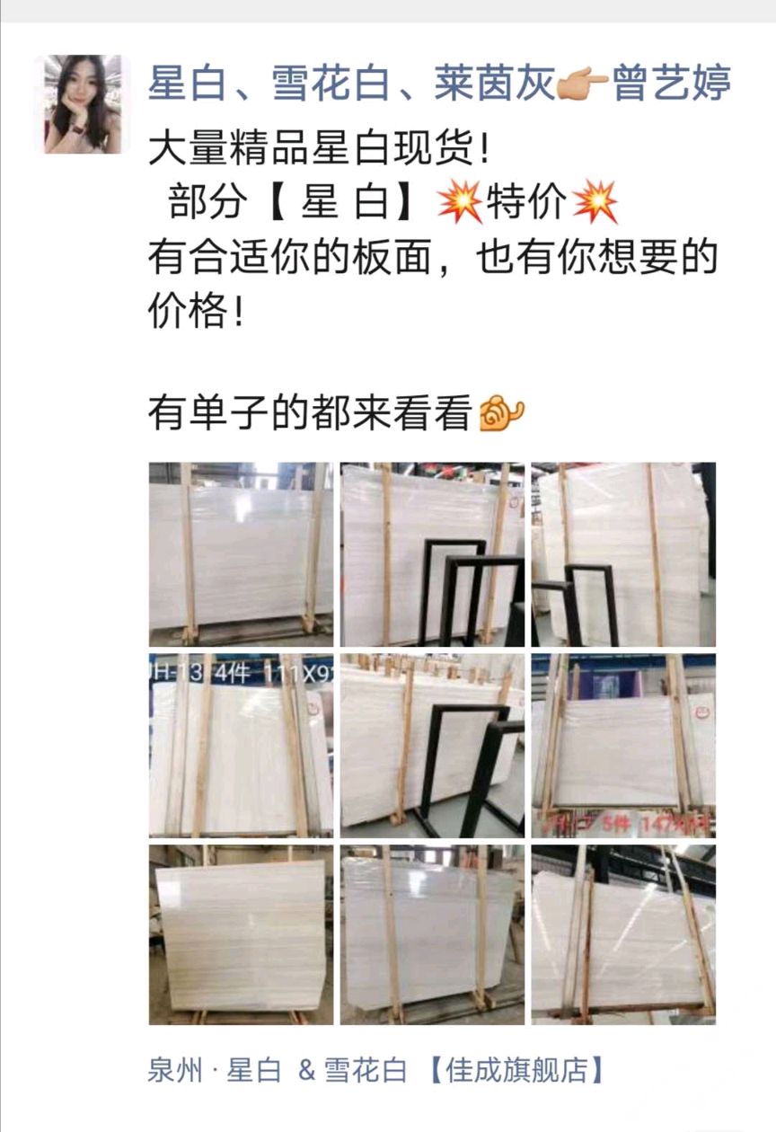 發(fā)布信息: 部分星白特價(jià),有單子的詳談! 厚度: 1.5cm & 1.8cm 地址 : 南翼石材城三號(hào)四號(hào)倉(cāng)三區(qū) 【佳成石業(yè)】 財(cái)富熱線:13489368683曾