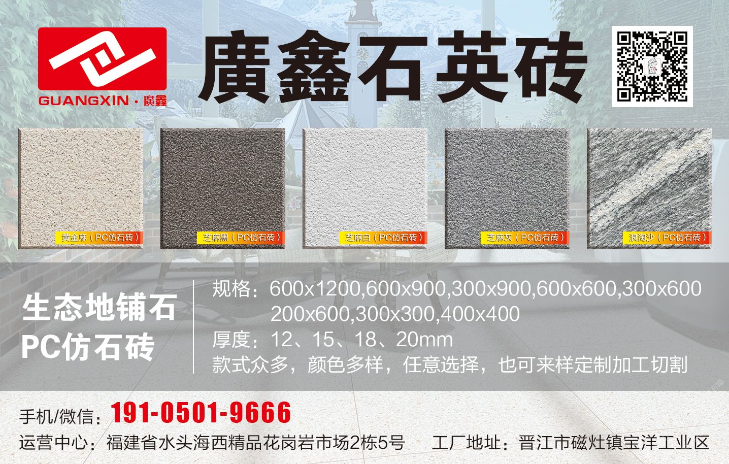 發(fā)布信息: 石英磚.pc仿石磚.生態(tài)地鋪石.PC磚.熔巖板.厚磚.生態(tài)石.景觀PC磚~~新國福實(shí)業(yè)/廣鑫石英磚·歡迎鑒賞13400812000
