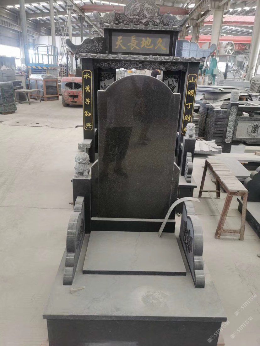 G654芝麻黑柬埔寨黑黑色墓碑石套墓花崗巖石材廠家