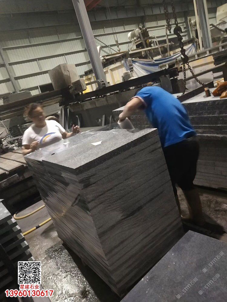 芝麻黑光面燒面機切面板材g654花崗巖規(guī)格板成品板
