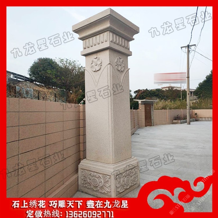 發(fā)布信息: 院子大門石柱價(jià)格 石材大門門柱造型圖片——九龍星石業(yè)。 ? ??石材大門門柱造型圖片的形態(tài)與構(gòu)成中國柱式的斗栱從單層發(fā)展至多層,由較基本的四鋪?zhàn)髂酥涟l(fā)展到八鋪?zhàn)?,形成一種十分精巧獨(dú)特的構(gòu)造,外觀上給人復(fù)雜多變、神秘莫測(cè)的感覺。斗栱的構(gòu)件又都是一些較小的部件,如“枓”、“栱”、“昂”等。將這些較小的部件以榫卯形式搭接咬合,組成一組整體性的空間框架體系,使人嘆為觀止。 ? ??院子大門石柱在低層或多層建筑中,當(dāng)層高較高時(shí),室內(nèi)空間中會(huì)出現(xiàn)過分細(xì)長的柱子,使別墅圓柱子形態(tài)缺乏一定的張力,因此可采取相應(yīng)的裝飾設(shè)計(jì)方法從視覺上擴(kuò)張柱子的橫向體量感。 ? ??院子大門石柱的直徑和高度主要取決于荒料的尺寸,較小直徑一般為100mm,較大直徑小于等于2000mm;不論是整體的、還是部分的圓柱,其單體高度一般小于5000mm,但也有一些高度超過5000mm的特殊圓柱。標(biāo)準(zhǔn)的別墅大門石材柱子包括柱礎(chǔ)、柱體和柱帽三個(gè)部分。