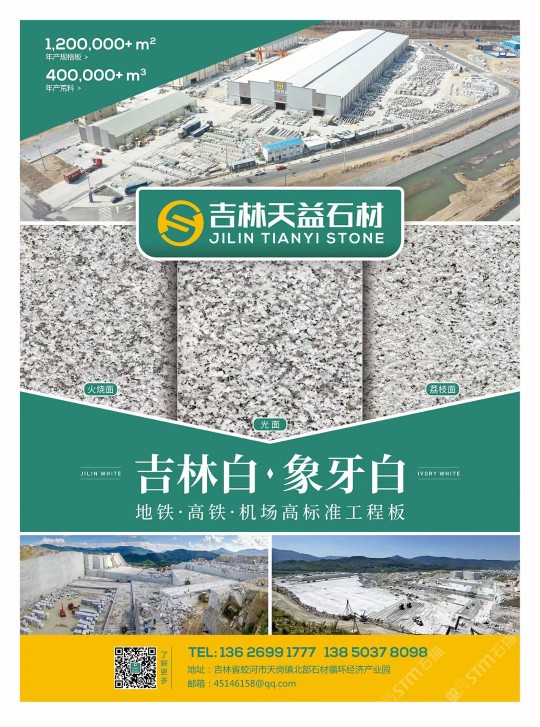 發(fā)布信息: 吉林省鑫天富石業(yè)有限公司 蛟河市天益石材有限公司主營:吉林白,象牙白。地鐵,高鐵,機(jī)場高標(biāo)準(zhǔn)工程板[勾引][勾引] 財(cái)富熱線:13626991777 13110945151郭