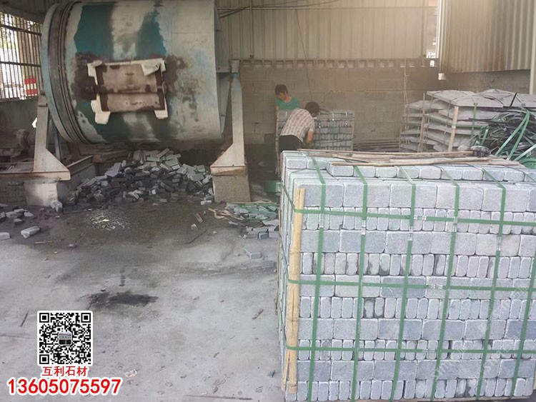 福建芝麻黑芝麻灰花崗巖小方塊滾石滾筒石馬蹄石彈石