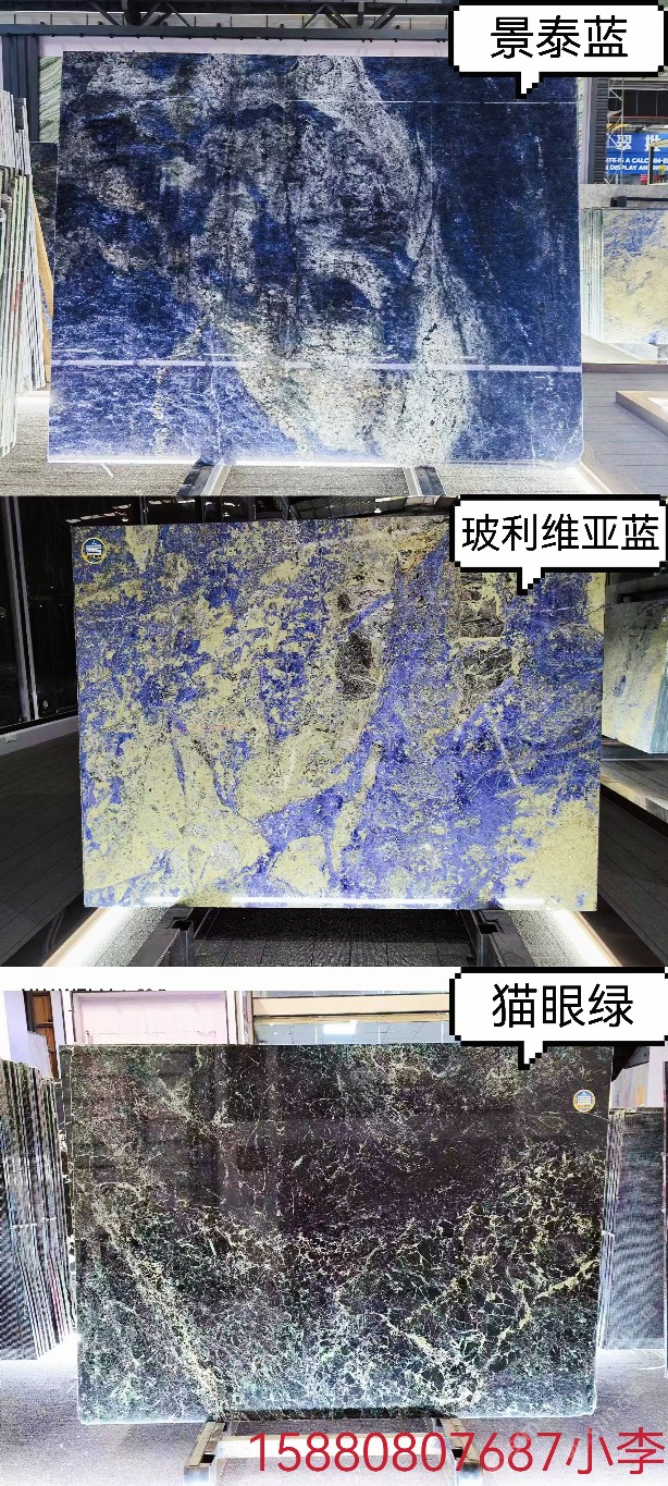 發(fā)布信息: 中??挡┥菔鳡I品種: 玻利維亞藍(lán),夢幻藍(lán)寶,景泰藍(lán),寶格麗黑,貓眼綠大板荒料批發(fā),奢石家具以及全屋石材高定! 地址:中閩石材城9號通道78區(qū) 合作熱線?? 15880807687