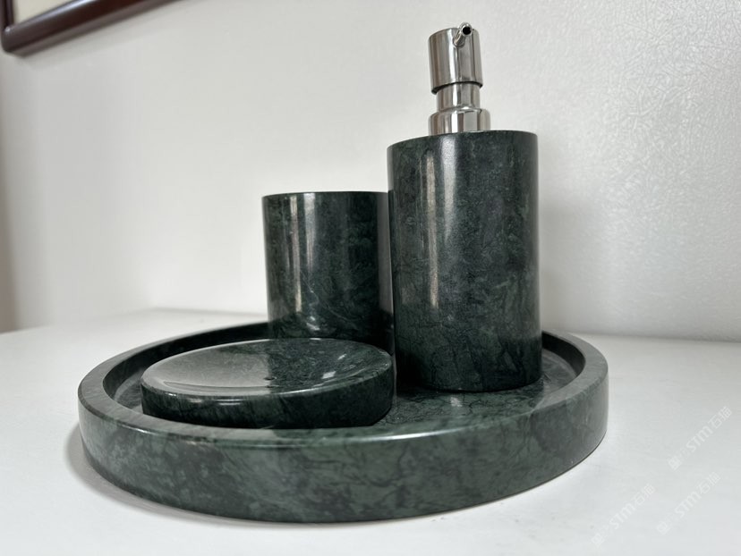 大花綠石材衛(wèi)浴四件套 石材香皂盒淋浴擺件托盤