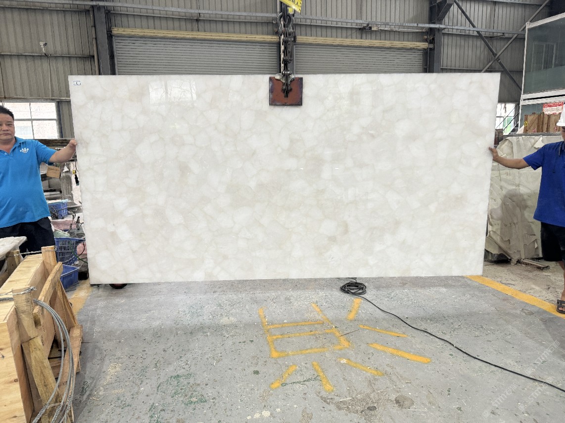 白水晶透光半寶石板材,優(yōu)質(zhì)透光石材定制