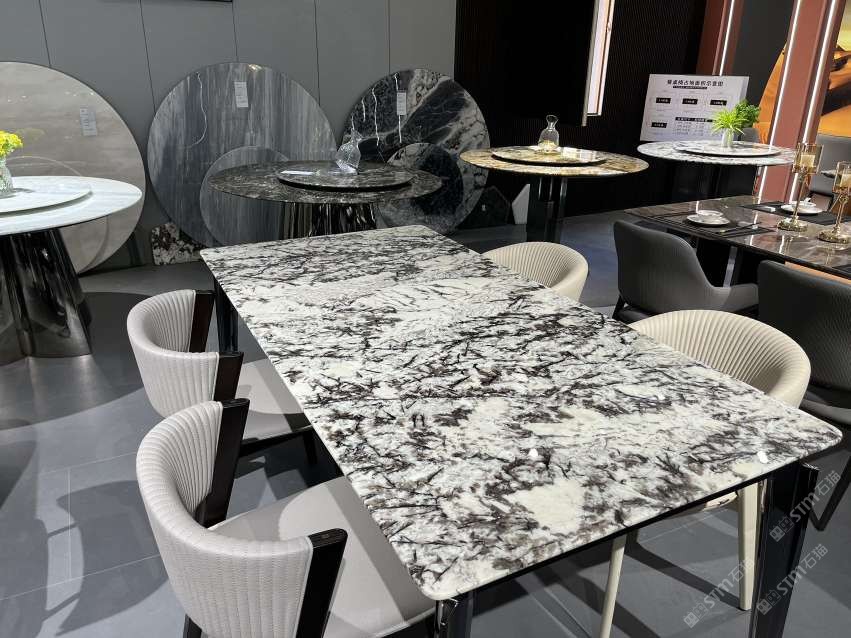 實木結(jié)合五金奢石餐桌:意大利威尼斯棕#奢石家居中心
