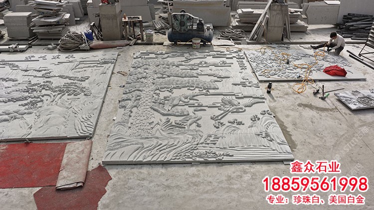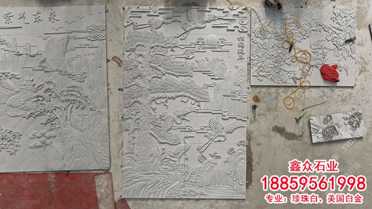 珍珠白美國白金金點白金松鶴延年浮雕庭院景墻石雕壁畫