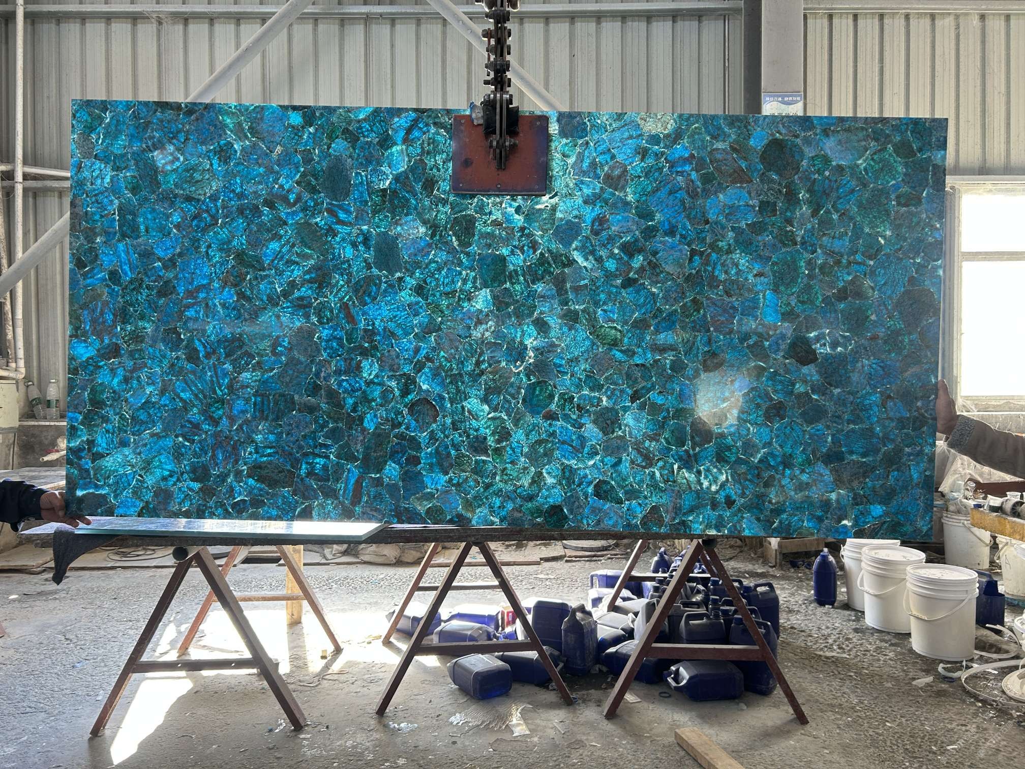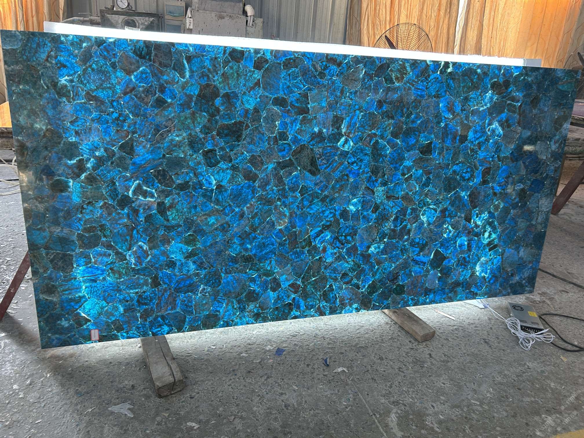 藍(lán)色透光石材,磷灰石,半寶石板材批發(fā)定制