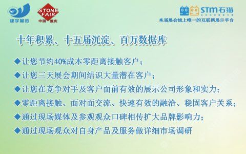 發(fā)布信息: 主辦:重慶市工商聯(lián)(總商會(huì))建材商會(huì)、重慶建宇展覽有限公司 承辦:重慶建宇展覽有限公司 時(shí)間:2018年5月10-12日 地點(diǎn):重慶國(guó)際會(huì)議展覽中心 【往屆回顧】 上屆展會(huì)有來自國(guó)內(nèi)外近600余家知名企業(yè)和品牌參展,展示面積25000平方米,共接待了包括開發(fā)商、建筑商、承包商、裝飾設(shè)計(jì)、代理商、經(jīng)銷商等專業(yè)人士近3萬人次,被業(yè)界譽(yù)為中國(guó)西部地區(qū)專業(yè)性強(qiáng),參展效果的行業(yè)盛會(huì)之一!同時(shí)也得到了重慶市政府部門及行業(yè)主管部門的大力支持和指導(dǎo)。 【參展范圍】 石材類:大理石/花崗石/砂巖荒料、石灰石、板巖等 板材類:天然石材/大理石/花崗石板材、復(fù)合板材、環(huán)境石材 人造石類:人造石英石、人造文化石、人造石板材 石雕制品類:石雕、石刻制品、石碑制品、園林風(fēng)景石、假山石等 環(huán)境裝飾類:卵石、仿古石、景觀石、磨菇石等 石材機(jī)械及加工設(shè)備:金剛石串珠鋸、研磨拋光設(shè)備、水射流切割機(jī)等 養(yǎng)護(hù)材料及設(shè)備:石材養(yǎng)護(hù)用品及設(shè)備、各類石材清洗、研磨劑、石材拋光劑等 【為什么選擇-建宇·建博會(huì)—十年積累、十五屆沉淀、百萬數(shù)據(jù)庫】 ?節(jié)約40%成本零距離接觸客戶 ?三天展會(huì)期間結(jié)識(shí)大量潛在客戶 ?在對(duì)手及客戶面前展示公司形象和實(shí)力 ?快速有效的融洽、穩(wěn)固客戶關(guān)系 ?通過現(xiàn)場(chǎng)媒體及觀眾口碑相傳擴(kuò)大品牌影響力 ?通過現(xiàn)場(chǎng)觀眾對(duì)產(chǎn)品及服務(wù)做詳細(xì)市場(chǎng)調(diào)研 【中國(guó)?重慶建博會(huì)組委會(huì)】 單 ?位: 重慶建宇展覽有限公司 電 ?話: 023-86376000/62925058 傳 ?真: 023-86376218 e-mail: ?jianyuzl@163.com 地 ?址: 重慶市南岸區(qū)南坪西路3號(hào)商業(yè)大樓29-4
