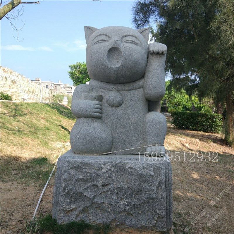 石雕石頭招財貓 公園園林石頭貓工藝擺件