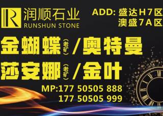 潤(rùn)順石業(yè)主營(yíng)產(chǎn)品:奧特曼(旺程礦),莎安娜(老礦),莎安娜米黃,莎安娜米黃(白沙糖底),奧特曼,現(xiàn)代灰,愛(ài)瑪仕灰,雅士白企業(yè)地址:福建泉州南安市荷北路澳盛市場(chǎng)10棟2區(qū);盛達(dá)市場(chǎng)h7區(qū)