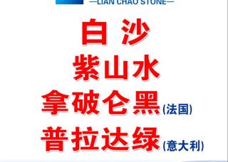 聯(lián)超石業(yè)主營產(chǎn)品:白沙(光面),白沙米黃,白沙米黃(中細(xì)沙),紫山水,普拉達(dá)綠,拿破侖黑(法國),寶格麗黑(法國)企業(yè)地址:福建泉州水頭鎮(zhèn)澳盛2號門1棟4區(qū)