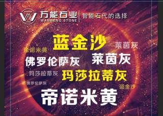 萬能(新萬益)石業(yè)主營產(chǎn)品:帝諾米黃,意大利藍金沙,意大利白金沙,藍金沙,白金沙,普京木紋(淺),藍金沙20,意大利藍金沙2,藍金沙(直紋),藍金沙9企業(yè)地址:福建泉州南安市水頭鎮(zhèn)中閩大理石666區(qū)