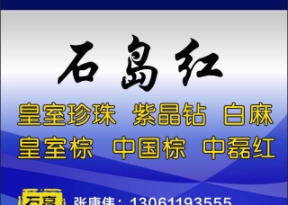 煙臺市牟平區(qū)天隆石材有限公司主營產(chǎn)品:牟平白麻,石島紅(老8號),石島紅(7號),石島紅,新石島紅(荔枝面),石島紅(新8號),新石島紅(光面),紫晶鉆,紫晶鉆大花,紫晶鉆小花,紫晶鉆1,紫晶鉆2,皇室棕鉆,皇室玫瑰,皇室玫瑰1,皇室玫瑰2企業(yè)地址:山東煙臺牟平區(qū)王格莊鎮(zhèn)駐地